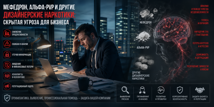 Сотрудник, употребляющий мефедрон, альфа-PVP и иные так называемые «дизайнерские» наркотики, представляет для организации не только медицинскую, но и управленческую, кадровую, репутационную и криминальную угрозу. Ошибка многих работодателей состоит в том, что проблема воспринимается как частная: «это его личная жизнь», «он употребляет только по выходным», «на работе он пока справляется». На практике такая позиция опасна.